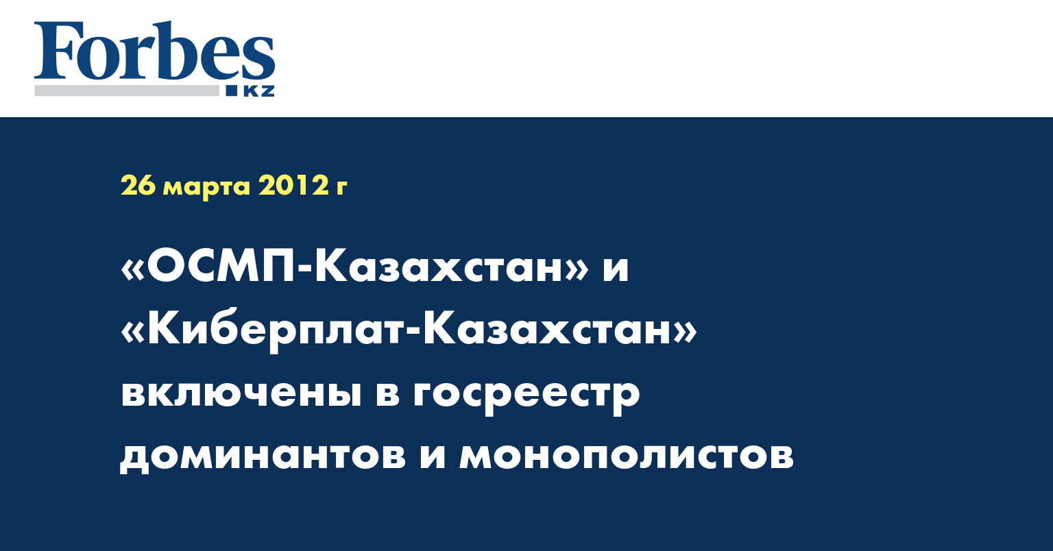 «В частности, по результатам проведенного анализа рынка платежей в оплату товаров (работ, услуг) через платежные терминалы включены в реестр ТОО «ОСМП-Казахстан» и ТОО «Киберплат-Казахстан», - отмечается в пресс-релизе.