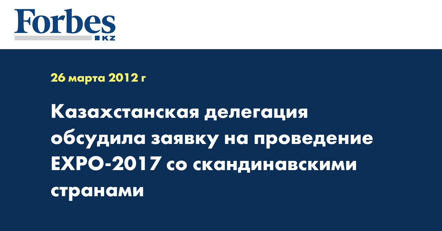 Рабочий визит казахстанской делегации во главе с ответственным секретарем министрества иностранных дел Казахстана, национальным координатором проекта EXPO-2017 Рапилем Жошыбаевым в Королевства Швеции, Дании и Финляндскую Республику, основной целью которых стало продвижение заявки Казахстана на проведение международной выставки ЕХРО в Астане в 2017 году состоялся 19-23 марта 2012 года, сообщила пресс-служба МИД.