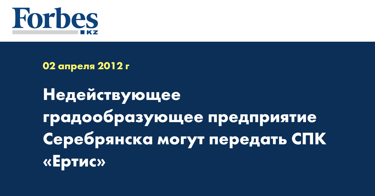 В целях реабилитации градообразующего предприятия Серебрянска - завода неорганических производств - руководство Восточного Казахстана направило в правительство предложение о передаче предприятия социально-предпринимательской корпорации (СПК) «Ертис», сообщили в пресс-службе акима ВКО, - передает КазТАГ.