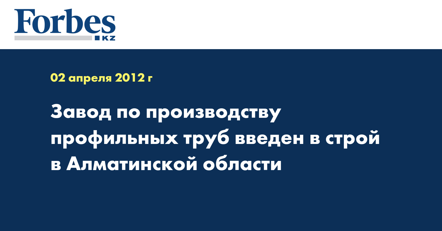 В с. Ашыбулак Илийского района Алматинской области введен в строй новый завод по производству профильных труб, сообщили в управлении предпринимательства и промышленности в понедельник, передает КазТАГ.