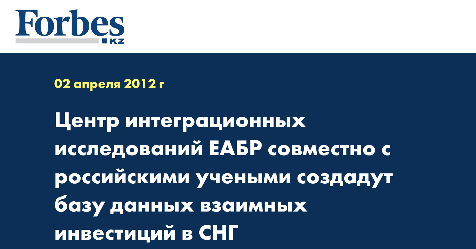 Центр интеграционных исследований Евразийского банка развития (ЕАБР) совместно с Институтом мировой экономики и международных отношений (ИМЭМО) Российской академии наук (РАН) создадут базу данных взаимных инвестиций в СНГ, сообщила пресс-служба банка, передает КазТАГ.