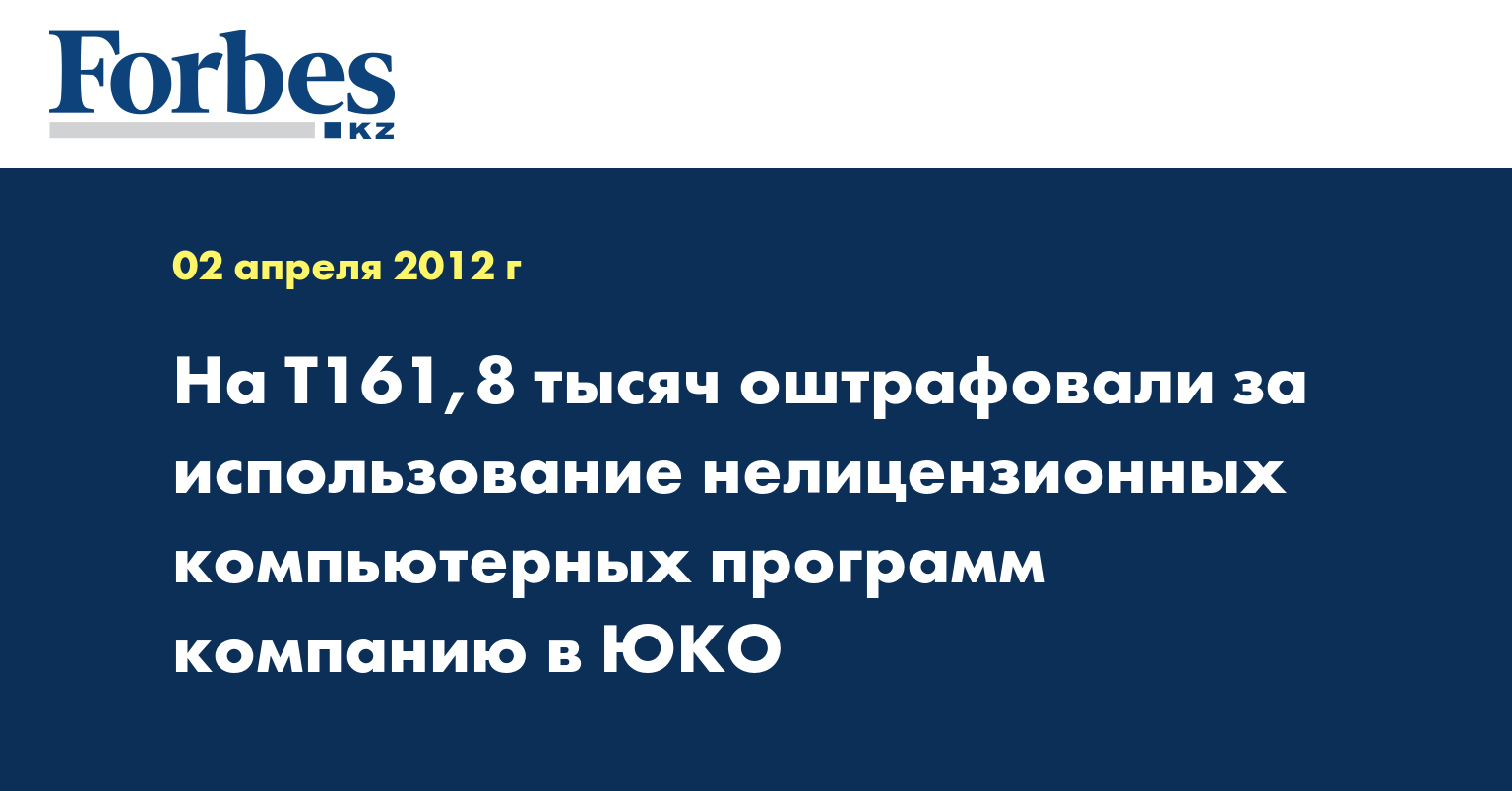 За использование нелицензионных компьютерных программ на Т161,8 тыс. оштрафовано ТОО «Нимэкс-Транс», сообщили в пресс-службе прокуратуры Южно-Казахстанской области, передает КазТАГ.