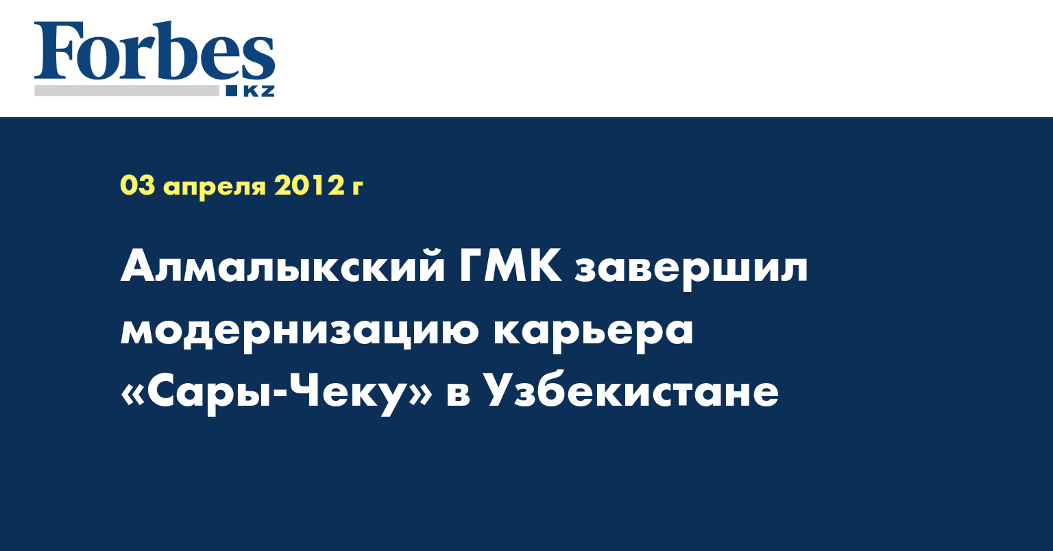 ОАО «Алмалыкский горнометаллургический комбинат» (АГМК) завершил реконструкцию сырьевой базы комбината - рудника «Сары-Чеку», сообщили на комбинате.