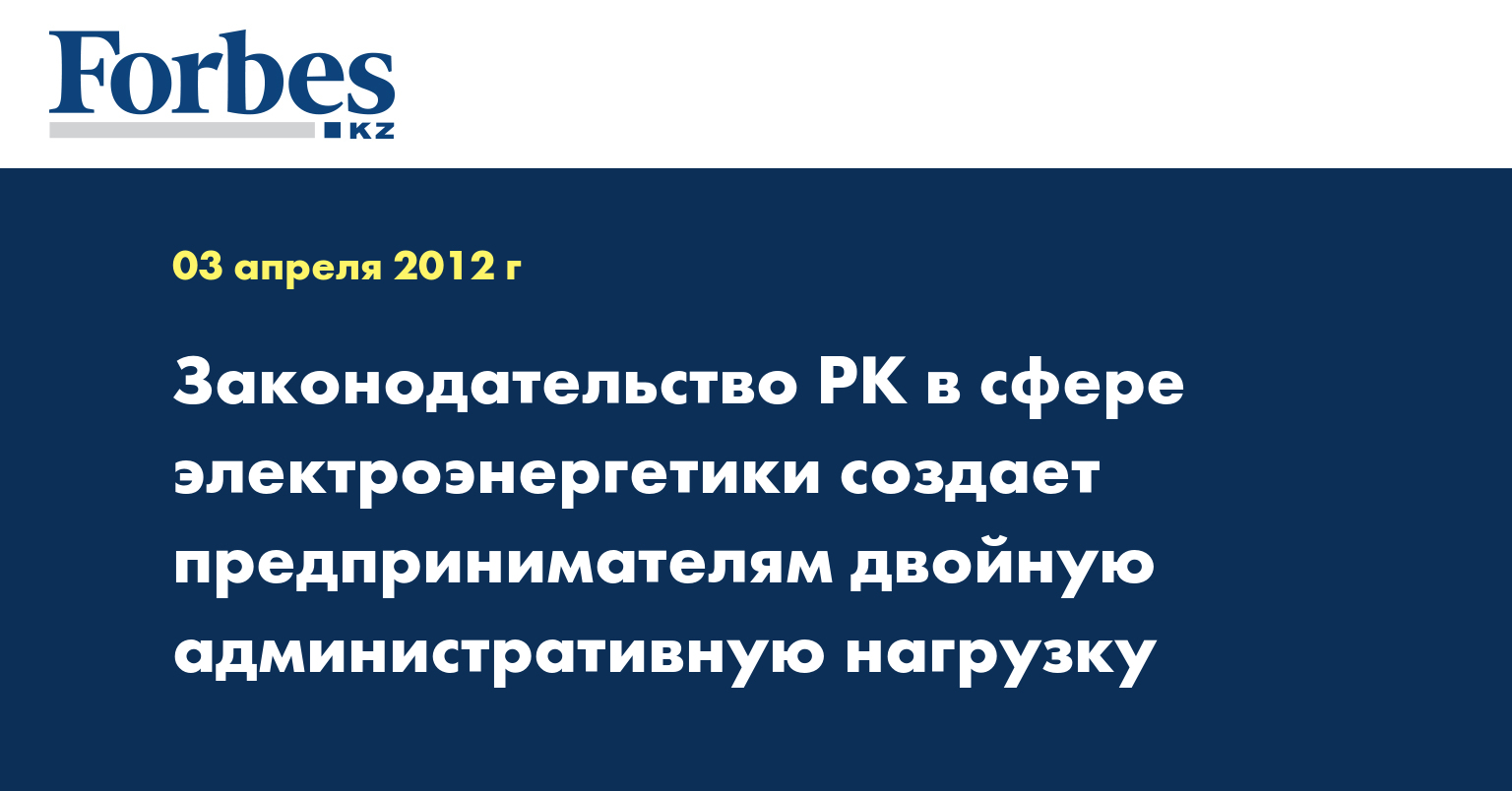 В национальной экономической палате (НЭП) «Союз «Атамекен» считают, что законодательство Казахстана в сфере электроэнергетики создает предпринимателям двойную административную нагрузку, сообщает КазТАГ.
