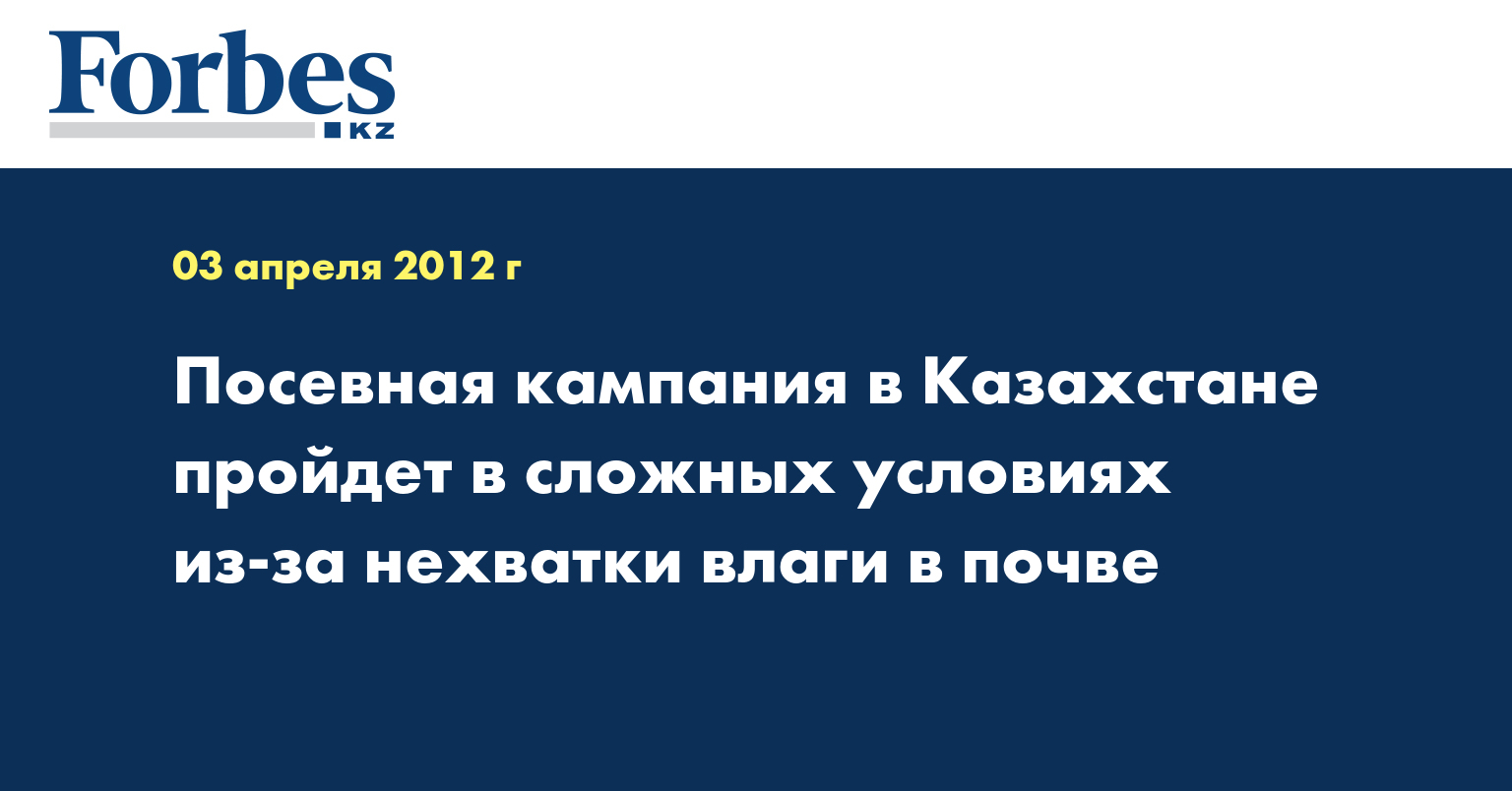 По данным специалистов АО «Казагроинновация», малоснежная зима, особенно в Акмолинской и Павлодарской областях, сказалась на запасах воды и снега в почве. Вопросы сохранения и пополнения почвенной влаги, эффективное ее распределение на участках рентабельных культур станут главной особенностью посева 2012 года.