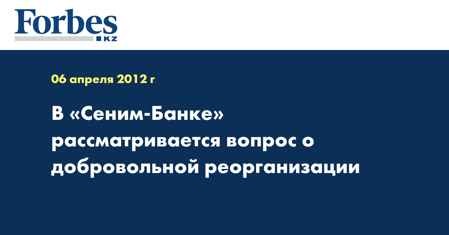 «Созвать внеочередное общее собрание акционеров 30 апреля 2012 года для рассмотрения вопроса о возможности добровольной реорганизации АО «Сеним-Банк», - указывается далее.