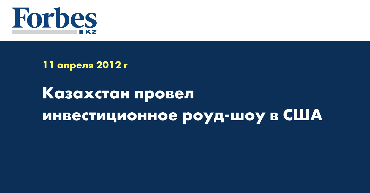 Роуд-шоу стартовало в Вашингтоне и собрало представителей крупных американских компаний, таких как Trans Сosmos Incorporated, Orbital Sciences, Merck, AGCO, Solar Turbine, Du Pont, Motorola Solutions. «Мы предлагаем наладить партнерские отношения в несырьевых секторах экономики Казахстана с использованием инновационных разработок и опыта их внедрения, привлечением высококвалифицированных менеджеров и трансферта передовых технологий», - отметил вице-министр индустрии и новых технологий Каныш Тулеушин в ходе мероприятия.