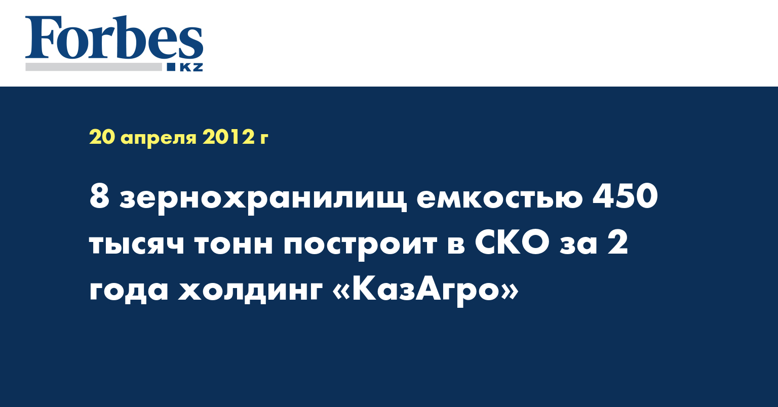 8 зернохранилищ емкостью 450 тыс. тонн будет построено в Северо-Казахстанской области (СКО) за 2 года национальным холдингом «КазАгро», сообщил глава холдинга Берик Бейсенгалиев.
