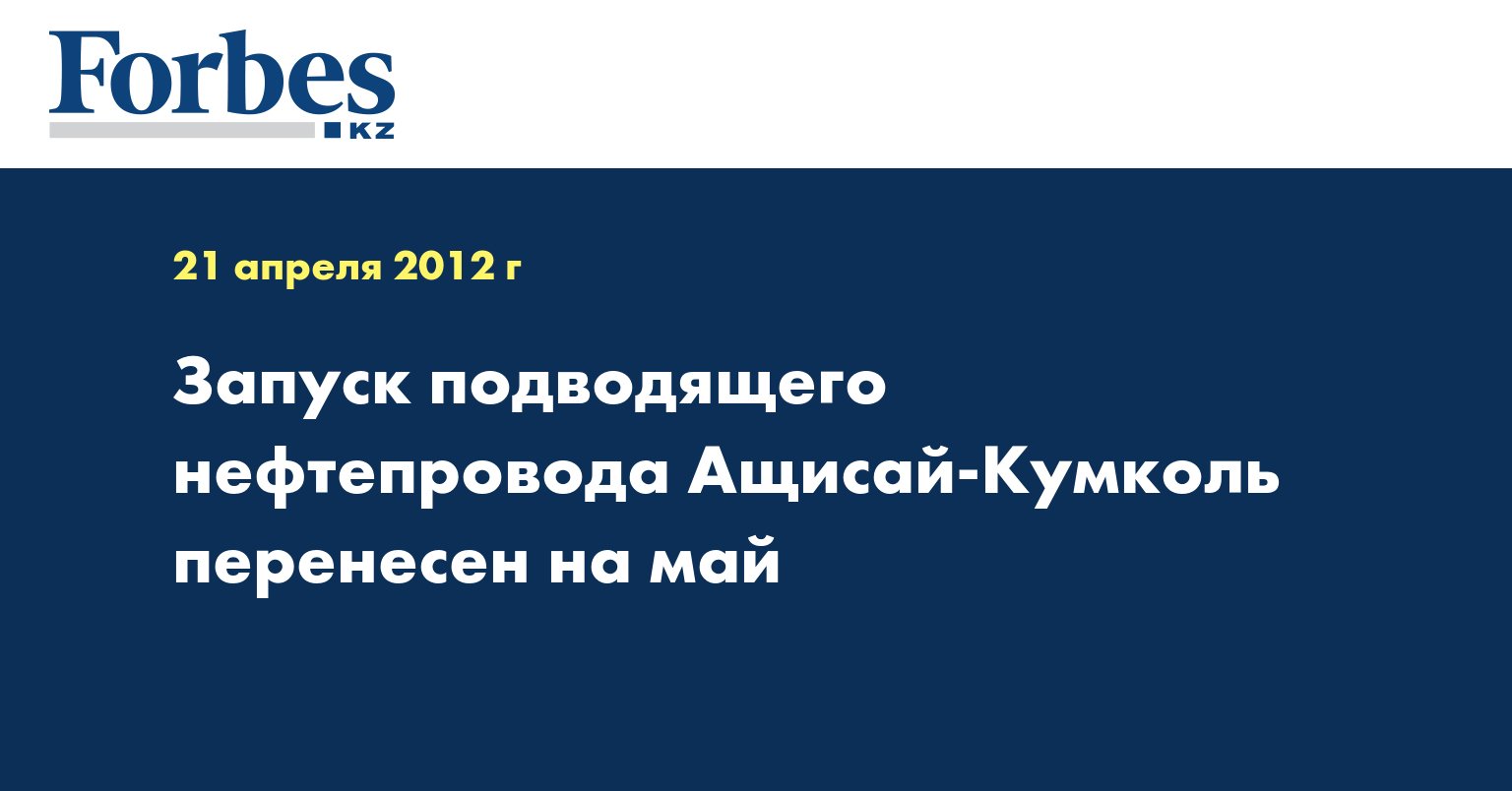 Запуск подводящего нефтепровода Ащисай-Кумколь протяженностью 40,5 км перенесен на май, сообщила начальник отдела социальных проектов и хозяйственного обеспечения АО «Нефтяная компания «КОР» Салтанат Камалова, передает КазТАГ.