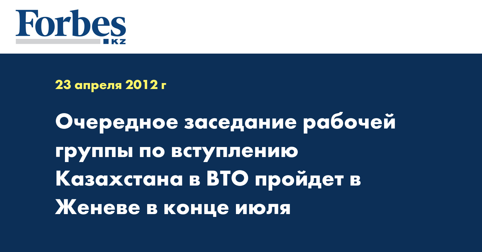 Очередное заседание рабочей группы (РГ) по вступлению Казахстана во Всемирную торговую организацию (ВТО) пройдет в Женеве в конце июля. Такое решение было принято на 11-м заседании рабочей группы по вступлению Казахстана в ВТО в Женеве, передает КазТАГ.