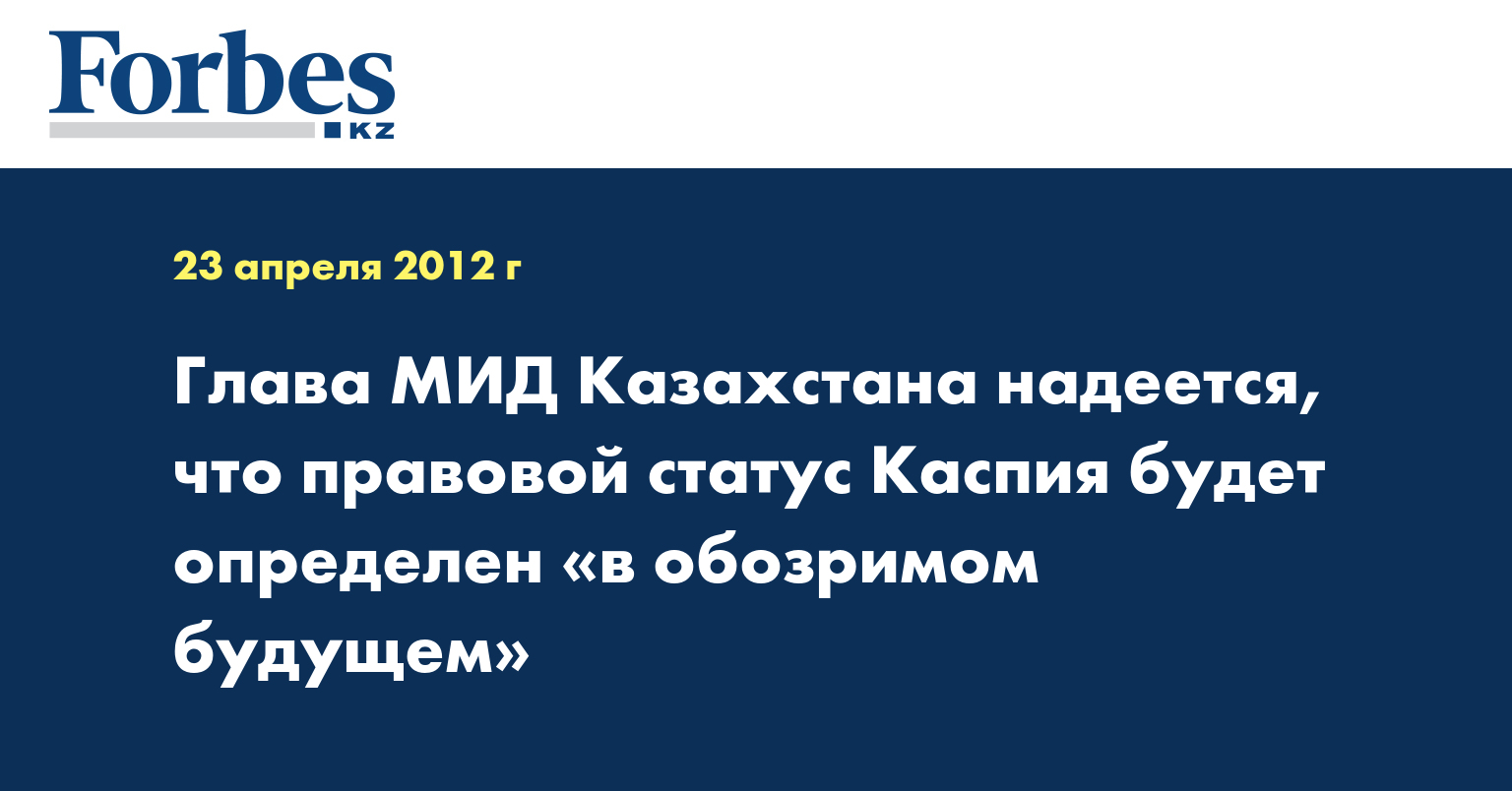 Министр иностранных дел Казахстана Ержан Казыханов выразил надежду, что прикаспийские страны «в обозримом будущем» определят правовой статус Каспийского моря.