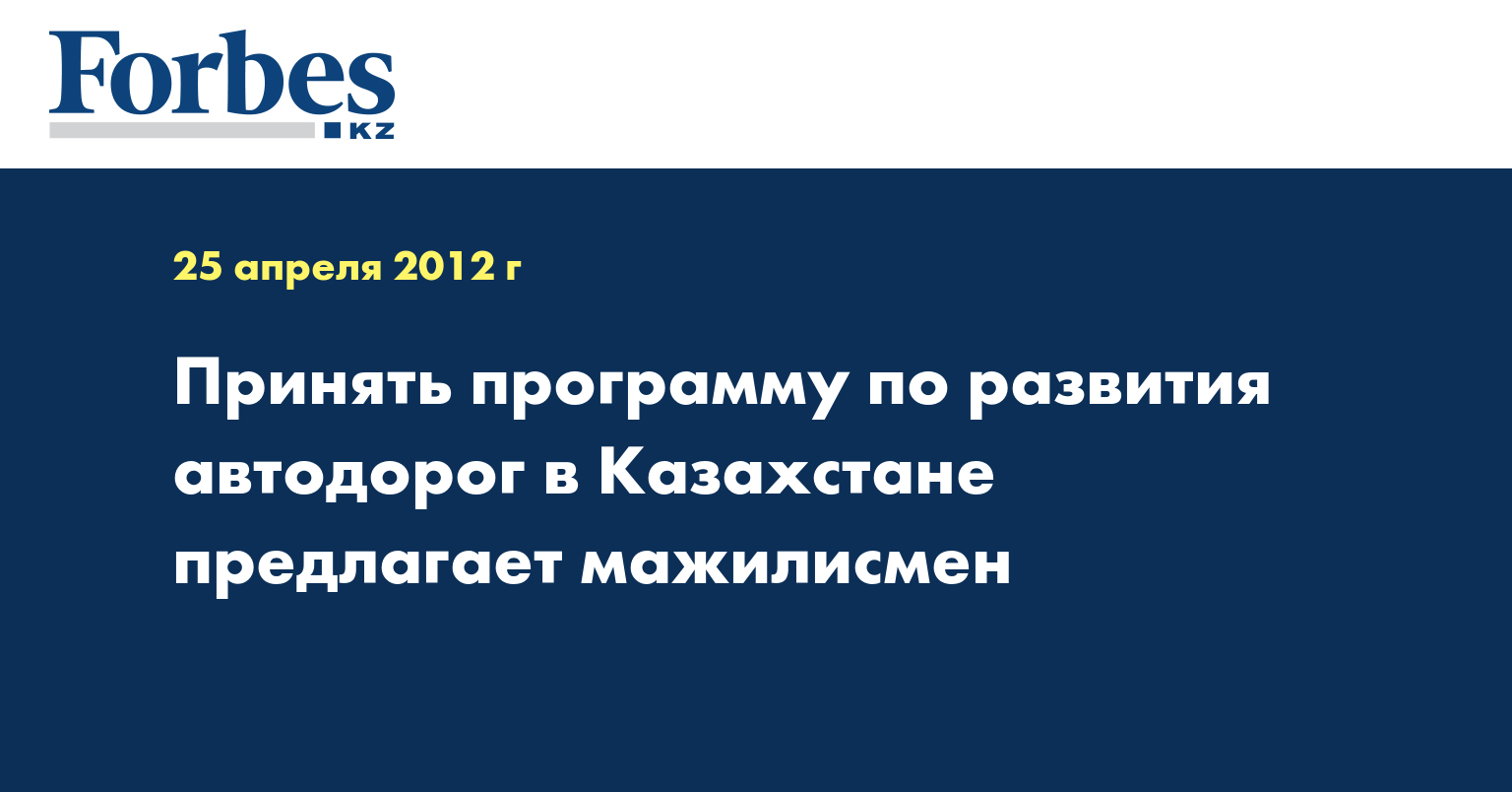 «Предлагаем разработать программы развития местных дорог на 2013-2018 годы, предусмотреть взаимные обязательства по финансированию строительства, капитального ремонта и среднего ремонта местных дорог за счет республиканского бюджета в размере 80% и из средств областного бюджета в размере 20%», - сказал Уразов, обращаясь в среду с депутатским запросом на имя премьер-министра страны в ходе пленарного заседания палаты.