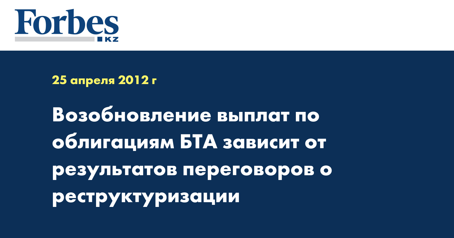 Напомним, 23 апреля «БТА банк» сообщил о том, что приостанавливает выплаты по облигациям на восстановление базовой стоимостью $5,2 млрд.