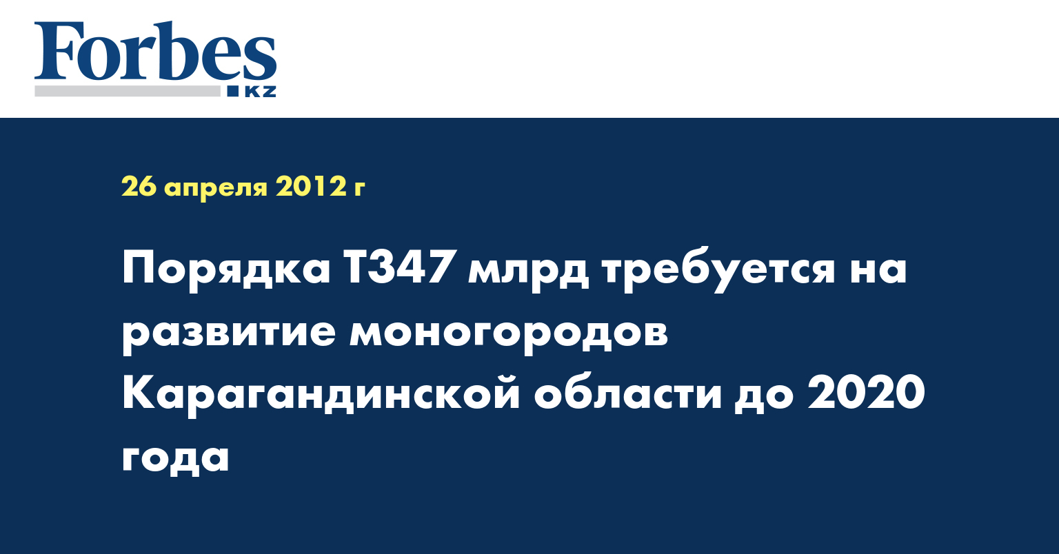На развитие моногородов Карагандинской области до 2020 г., по предварительным расчетам, требуется порядка Т347 млрд, сообщил заместитель акима области Ануар Ахметжанов, передает КазТАГ.