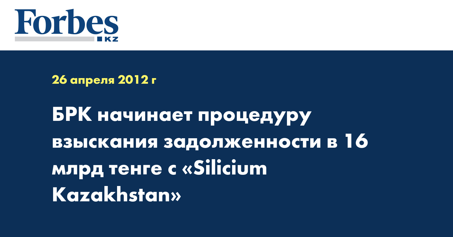 Профинансированный БРК проект ТОО «Silicium Kazakhstan» по производству металлического кремния был введен в эксплуатацию в конце 2010 года. В настоящее время завод в Карагандинской области работает на одной печи из двух предусмотренных. "Однако заемщик под разными предлогами затягивает сроки исполнения обязательств по кредиту БРК", - заявляет банк.