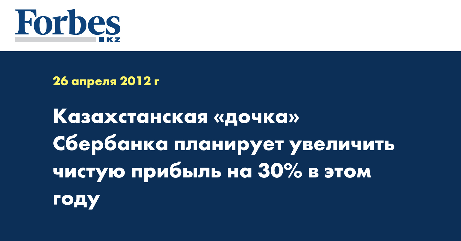 Дочерний банк АО «Сбербанк» планирует в 2012 году увеличить чистую прибыль на 30% до Т14,3 млрд, сообщил председатель правления банка Олег Смирнов.