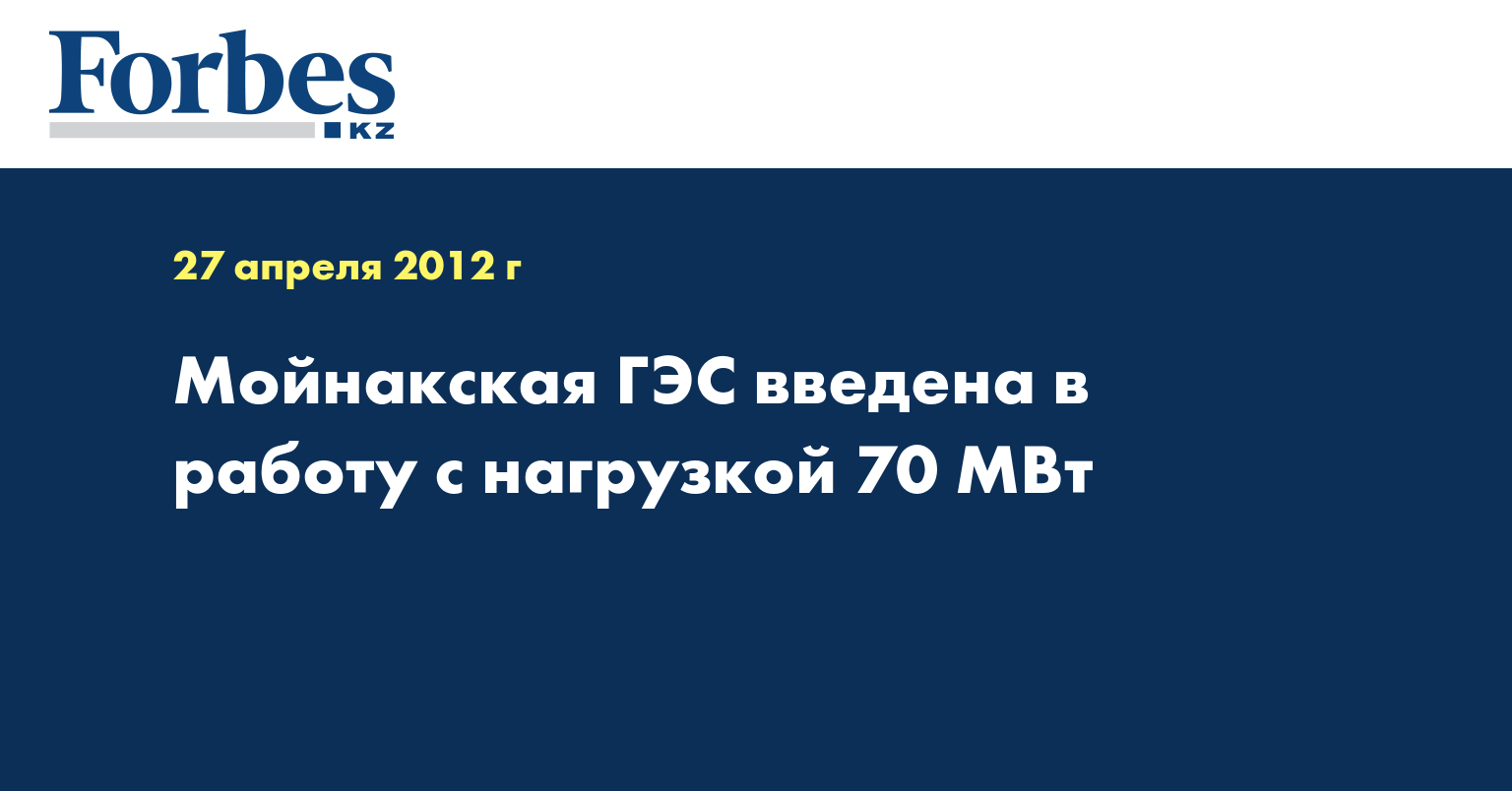 «Мойнакская ГЭС введена в работу с нагрузкой 70 МВт», - говорится в публикации ведомства в Twitter аккаунте, передает КазТАГ.