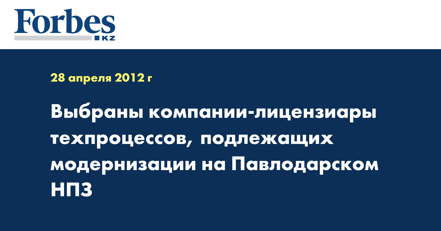 «АО «ПНХЗ», АО НК «КазМунайГаз», АО «КазМунайГаз - переработка и маркетинг», ТОО «Дирекция строящихся предприятий КМГ» выбрали лицензиаров для десяти технологических процессов нефтепереработки, подлежащих модернизации, реконструкции и конверсии», - говорится в сообщении, размещенном на сайте ПНХЗ, передает КазТАГ.