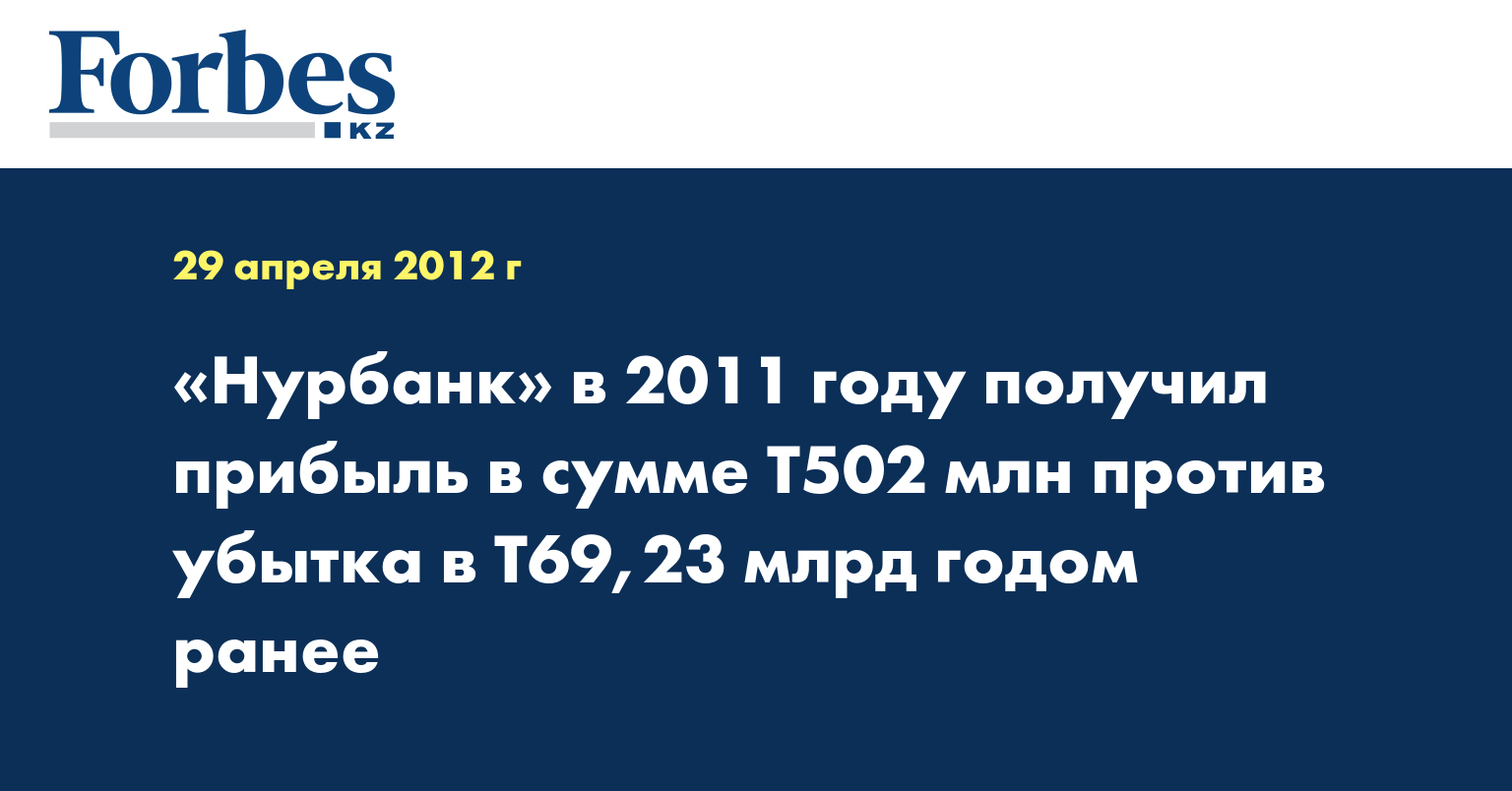 Прибыль АО «Нурбанк», согласно консолидированной финансовой отчетности по МСФО, по итогам деятельности в 2011 году составила Т502,29 млн против убытка в Т69,23 млрд в 2010 году, указывается в информации, размещенной на сайте банка, передает КазТАГ.