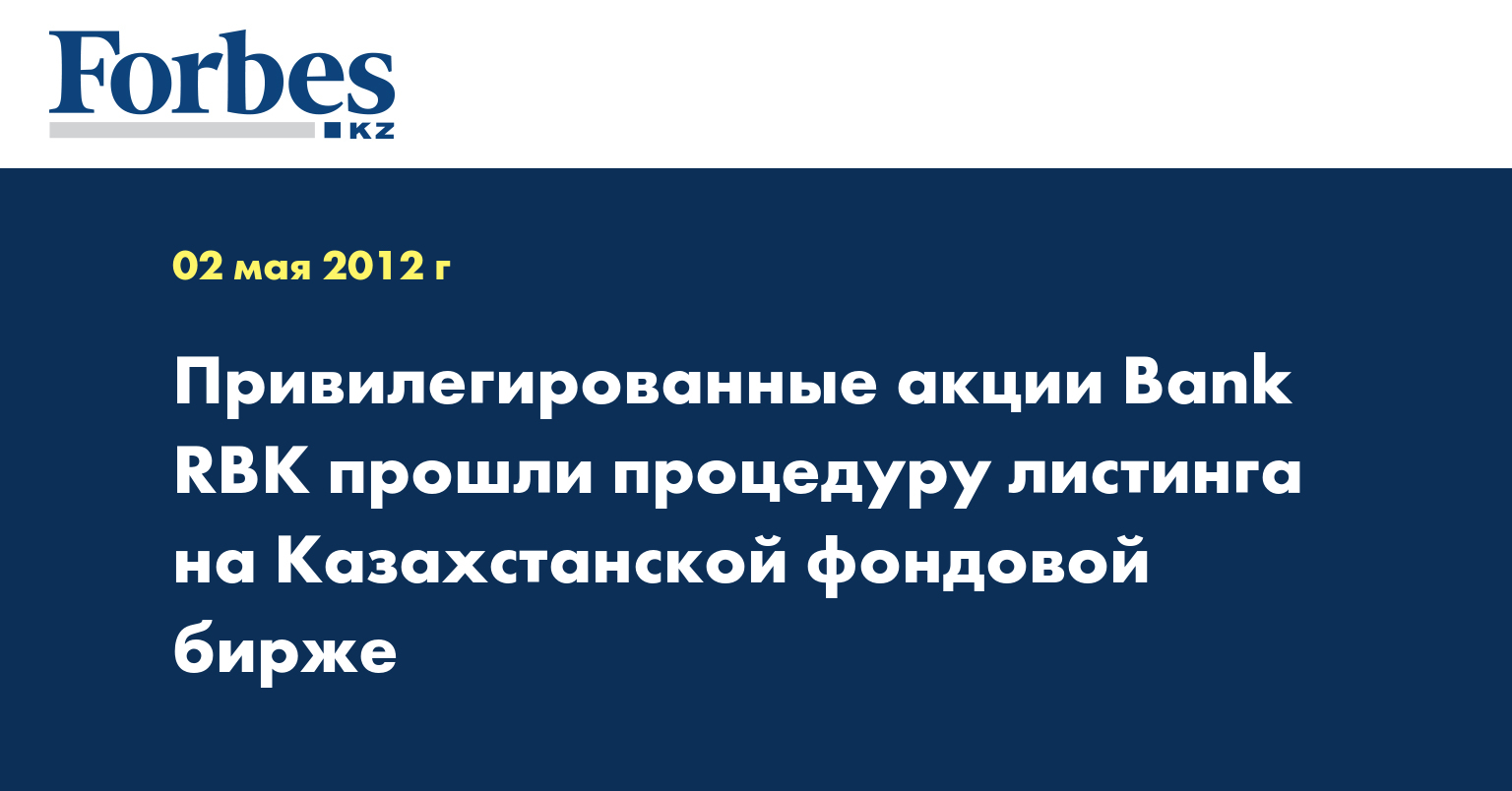 «Согласно решению листинговой комиссии Казахстанской фондовой биржи, привилегированные акции АО «Bank RBK» включены в официальный список KASE по второй категории», - указывается в информации, распространенной в среду, передает КазТАГ.