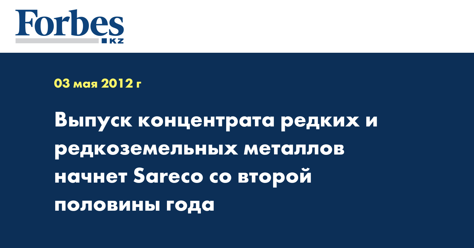 СП «Sareco» со второй половины 2012 года начнет выпуск концентрата редких и редкоземельных металлов, сообщил заместитель председателя правления АО «НАК «Казатомпром» Сергей Яшин.