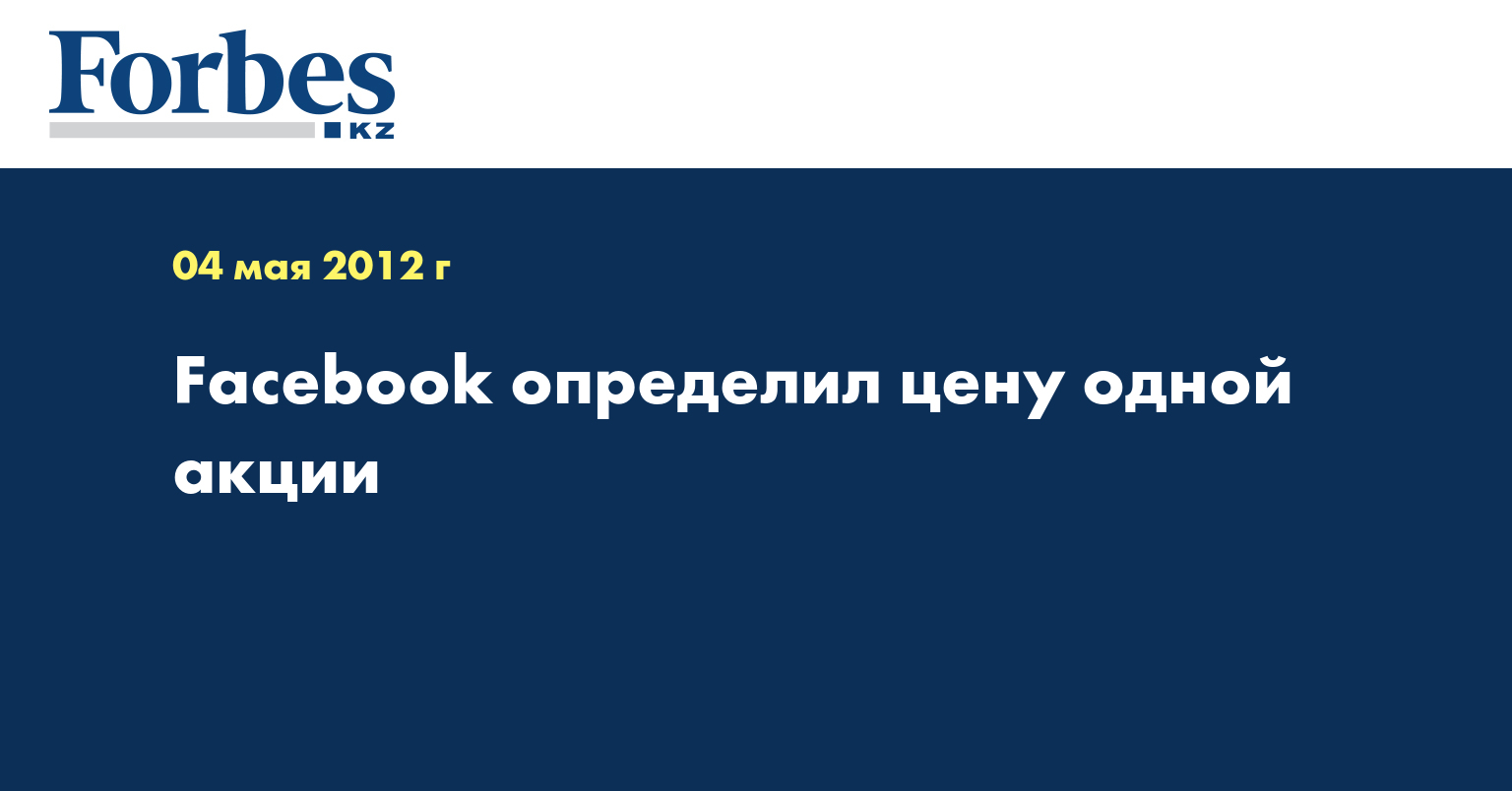 Одна акция социальной сети Facebook в ходе первичного размещения акций (IPO) будет стоить от 28 до 35 долларов, сообщается в четверг на сайте BBC News, передает Lenta.ru.