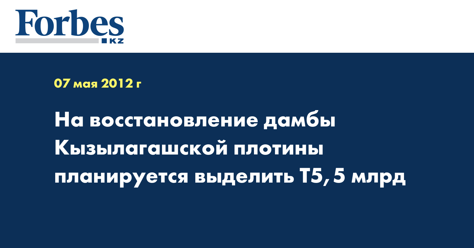 На восстановление разрушенной два года назад дамбы Кызылагашской плотины планируется выделить Т5,5 млрд, сообщил председатель комитета по водным ресурсам министерства сельского хозяйства РК Ислам Абишев, передает КазТАГ.
