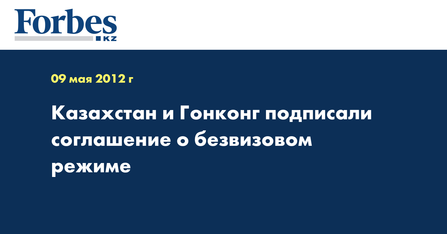 Соглашение между Республикой Казахстан и Специальным Административным Районом (САР) Гонконг Китайской Народной Республики о взаимном освобождении от визовых требований подписано в Гонконге 9 мая, сообщила пресс-служба министерства иностранных дел РК.