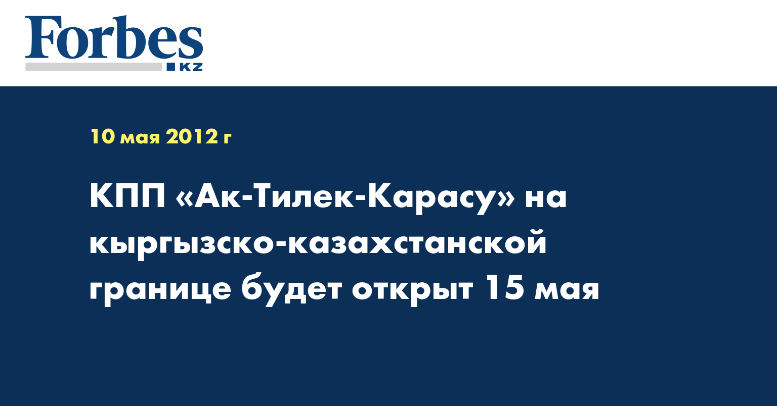 Пункт пропуска «Ак-Тилек-Карасу» на кыргызско-казахстанской границе будет открыт 15 мая, сообщил КазТАГ со ссылкой на КирТАГ.