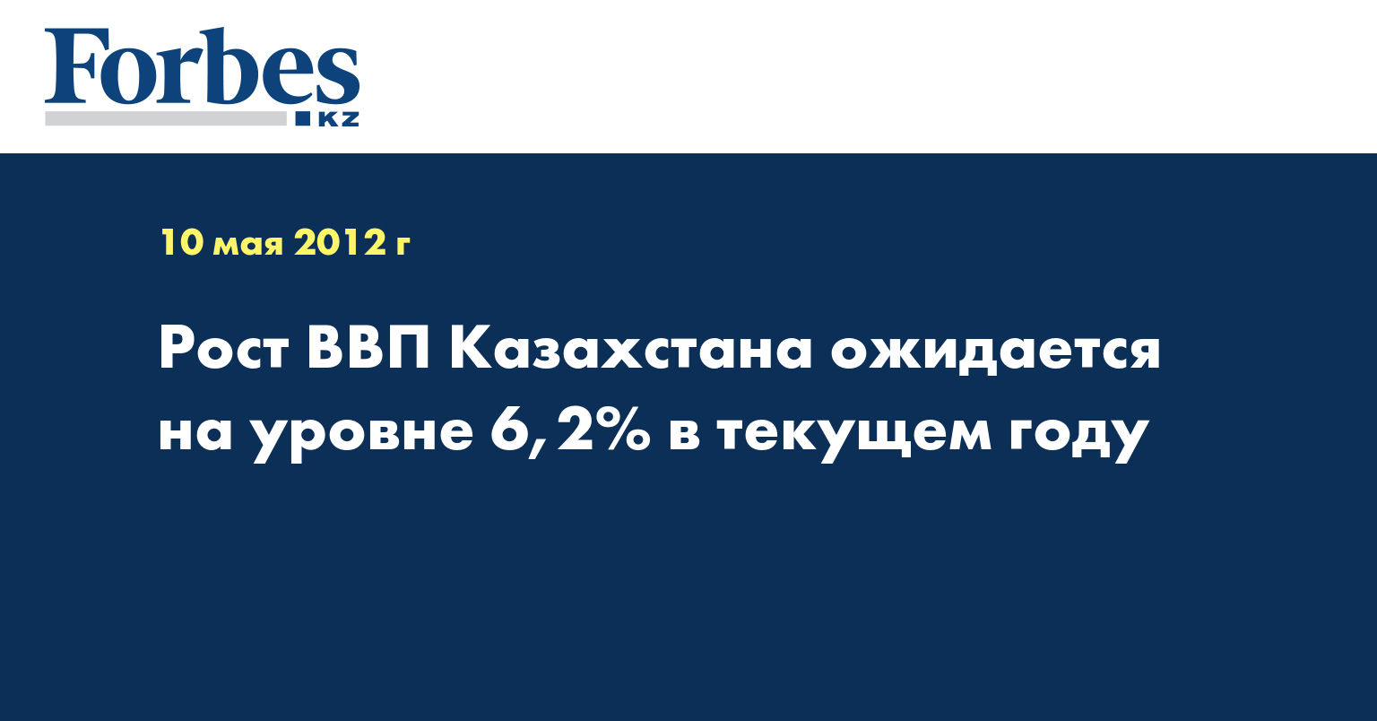 Рост валового внутреннего продукта (ВВП) Казахстана в 2012 году ожидается на уровне 6,2%, говорится в исследовании экономической и социальной комиссии для Азии и Тихого океана (ЭСКАТО) Организации объединенных наций (ООН), сообщает КазТАГ.