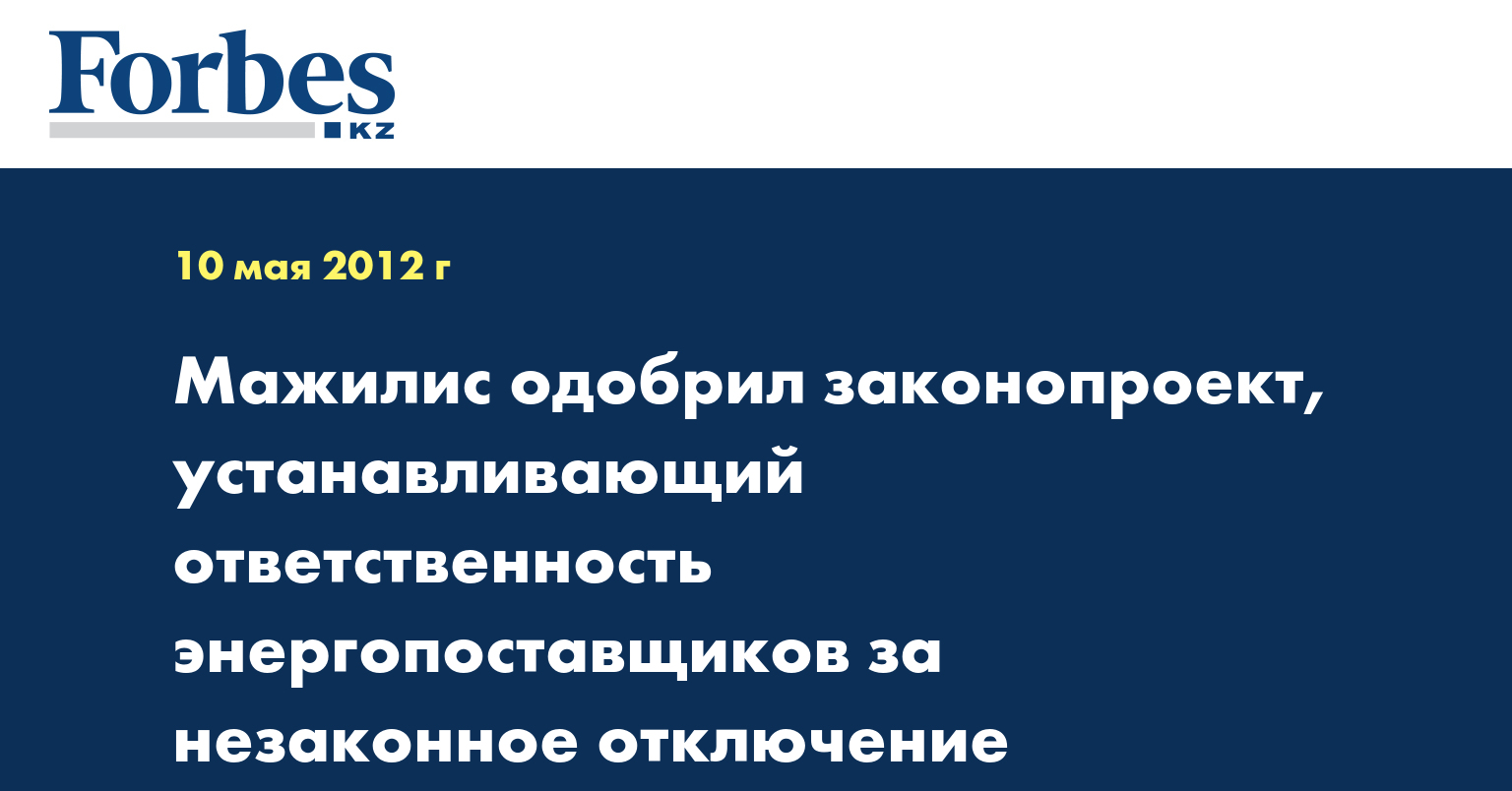 Мажилис парламента РК на пленарном заседании в четверг одобрил во втором чтении проект закона «О внесении изменений и дополнений в некоторые законодательные акты РК по вопросам электроэнергетики, инвестиционной деятельности субъектов естественных монополий и регулируемого рынка», устанавливающий ответственность энергопоставщиков за незаконное отключение потребителей.