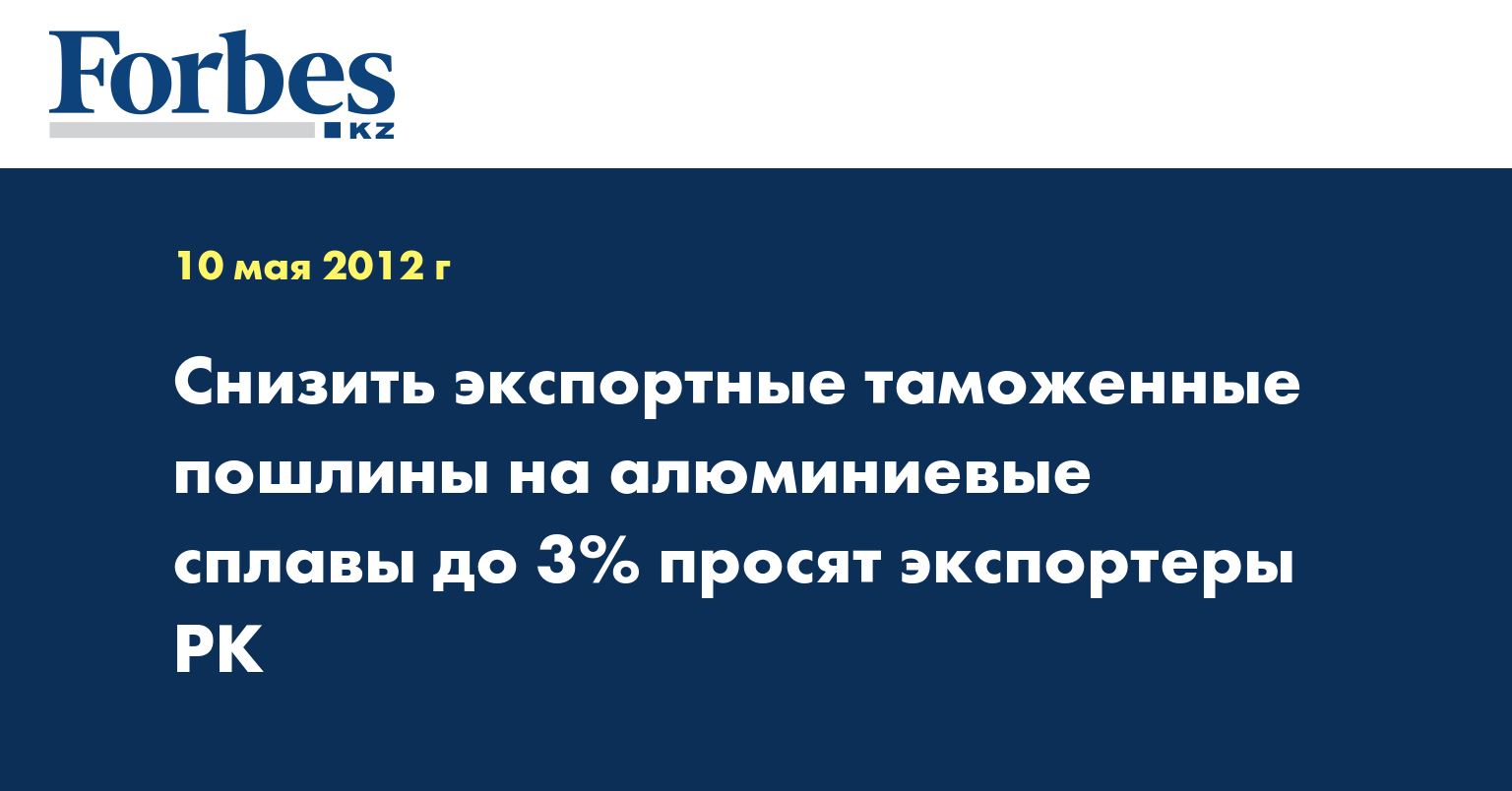 «На данном этапе действующая ставка экспортной таможенной пошлины на алюминиевые сплавы составляет 15%, но не менее 100 евро за тонну. В целях стимулирования экспорта ТОО «Кастинг» предлагает снизить ставку экспортно-таможенной пошлины на данную продукцию до уровня ставки экспортной таможенной пошлины, действующей в РФ в размере 3%», - сказал президент ОЮЛ «Союз производителей и экспортеров Казахстана» Николай Радостовец на VI заседании совета экспортеров в четверг.