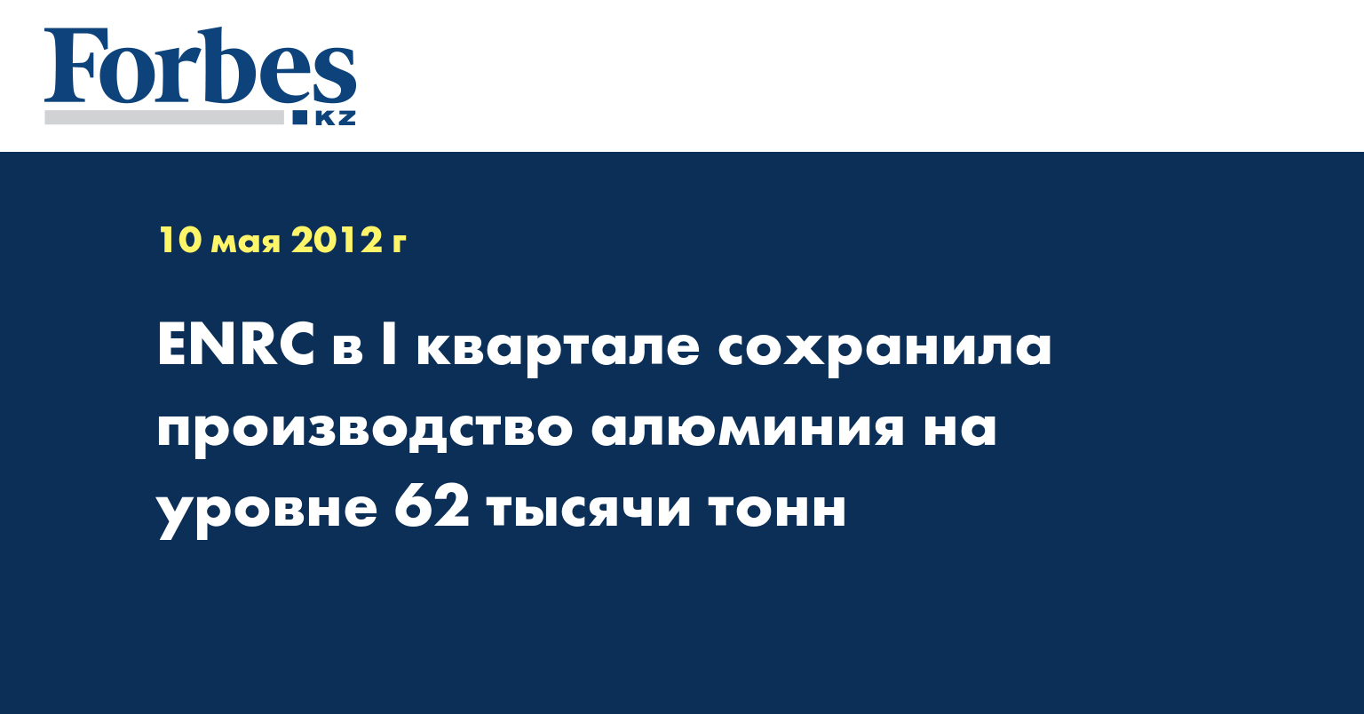 Eurasian Natural Resources Corporation Plc (ENRC) в I квартале произвела 62 тыс. тонны алюминия, что соответствует показателю аналогичного периода 2011 года, указывается в сообщении корпорации.