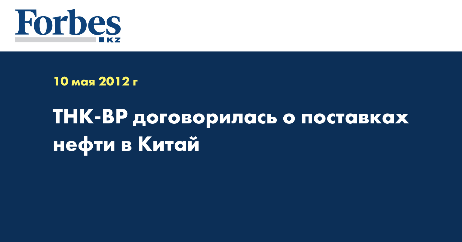 Российско-британская ТНК-BP договорилась о продаже 100 тысяч тонн нефти в Китай ежемесячно. Об этом в номере от 10 мая пишет газета"Ведомости" со ссылкой на источник в компании. Контракт был подписан несколько месяцев назад и будет действовать до конца года, передает Lenta.ru.
