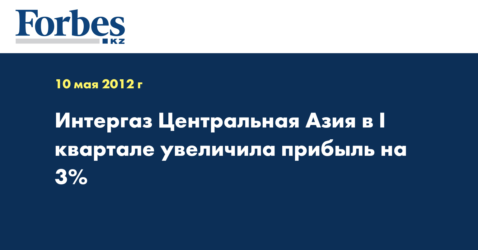 Компания «Интергаз Центральная Азия», управляющая газотранспортной системой Казахстана, по итогам января-марта текущего года получила чистую прибыль в размере 10,273 миллиарда тенге в сравнении с 9,969 миллиарда тенге прибыли в аналогичном периоде 2011 года, указывается в отчетности компании, передает ИА Новости-Казахстан.