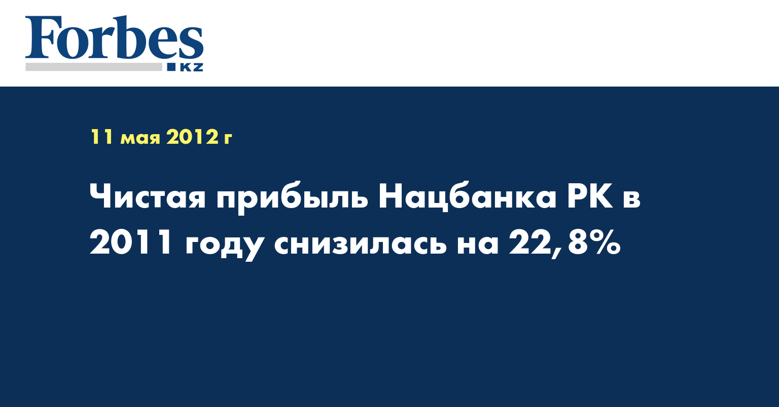 Чистая прибыль Национального банка РК в 2011 году снизилась на 22,8% до Т37,92 млрд, указывается в годовом отчете банка, передает КазТАГ.