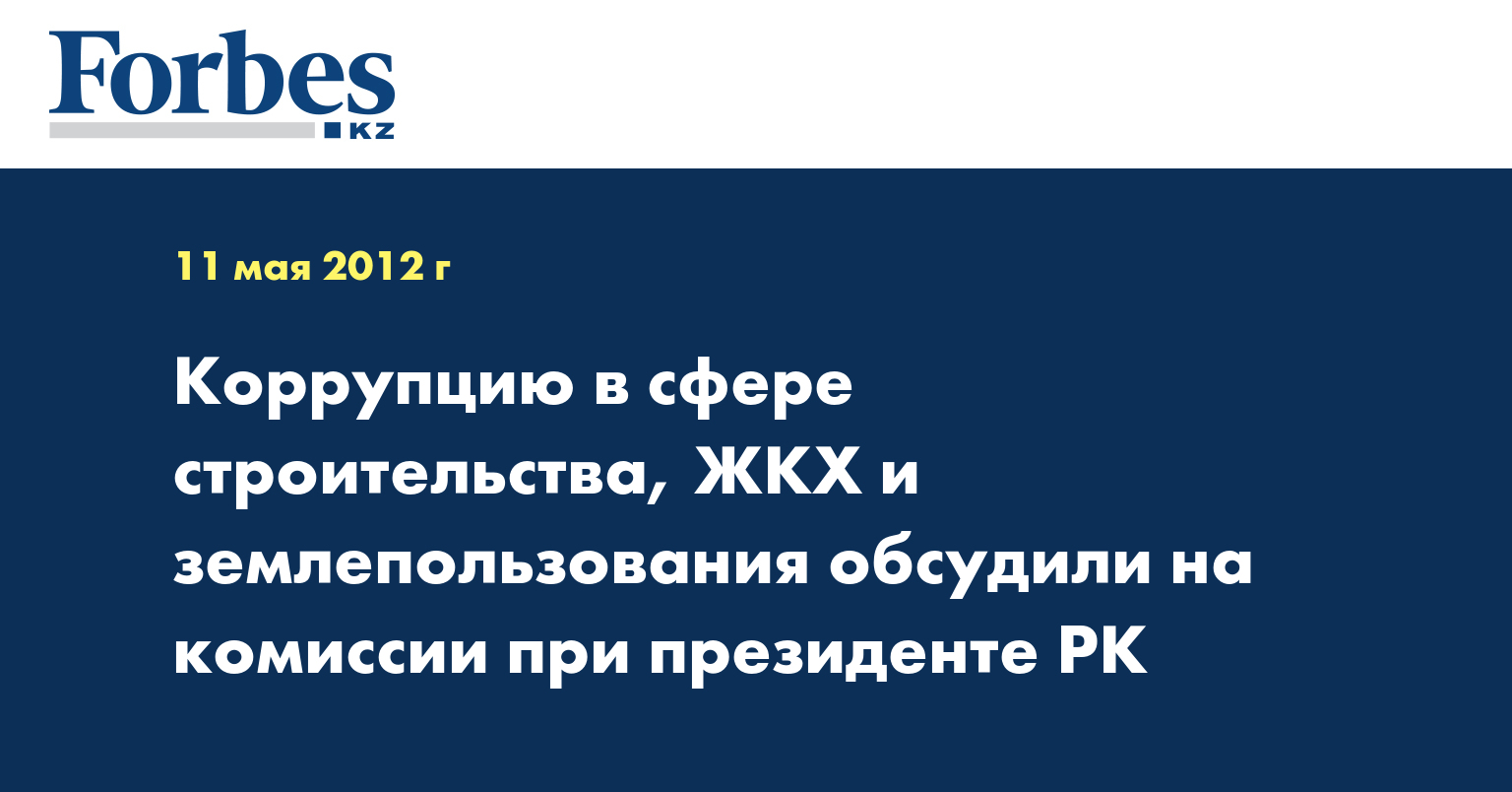 В сообщении указывается, что на заседании комиссии при президенте Республики Казахстан по вопросам борьбы с коррупцией обсуждены проблемы коррупциогенности в сфере строительства, жилищно-коммунального хозяйства и землепользования.