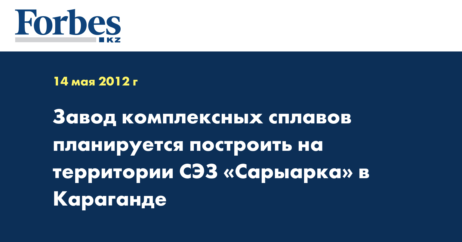 На территории специальной экономической зоны (СЭЗ) «Сарыарка» в Караганде к 2014 г. планируется построить завод комплексных сплавов для производства ферросиликоалюминия «Казахстанский», сообщили в акимате Карагандинской области, передает КазТАГ.