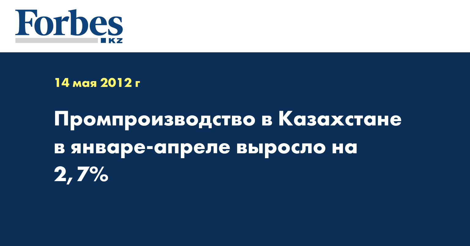 Рост объема промышленной продукции в Казахстане в январе-апреле 2012 года составил 2,7% по сравнению с аналогичным периодом прошлого года, сообщило Агентство республики по статистике, передает ИА Новости-Казахстан.