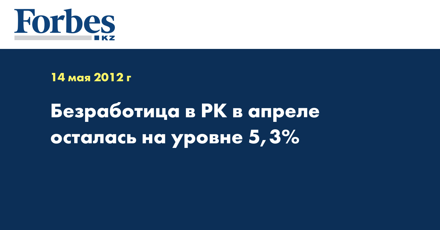 Численность безработных в апреле 2012 года, по оценке агентства РК по статистике, составила 475 тыс. человек, уровень безработицы – 5,3% (в марте – 5,3%), указывается в сообщении статагентства, передает КазТАГ.