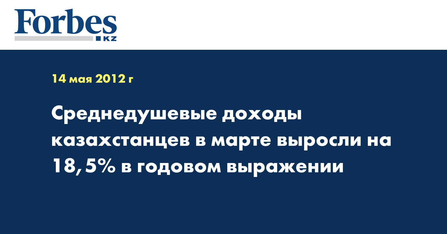 Среднедушевые номинальные денежные доходы населения Казахстана в марте, по предварительным данным, составили Т50 384, увеличившись по сравнению с соответствующим периодом 2011 года на 18,5%, реальные денежные доходы выросли на 13,3%, указывается в сообщении агентства РК по статистике, передает КазТАГ.