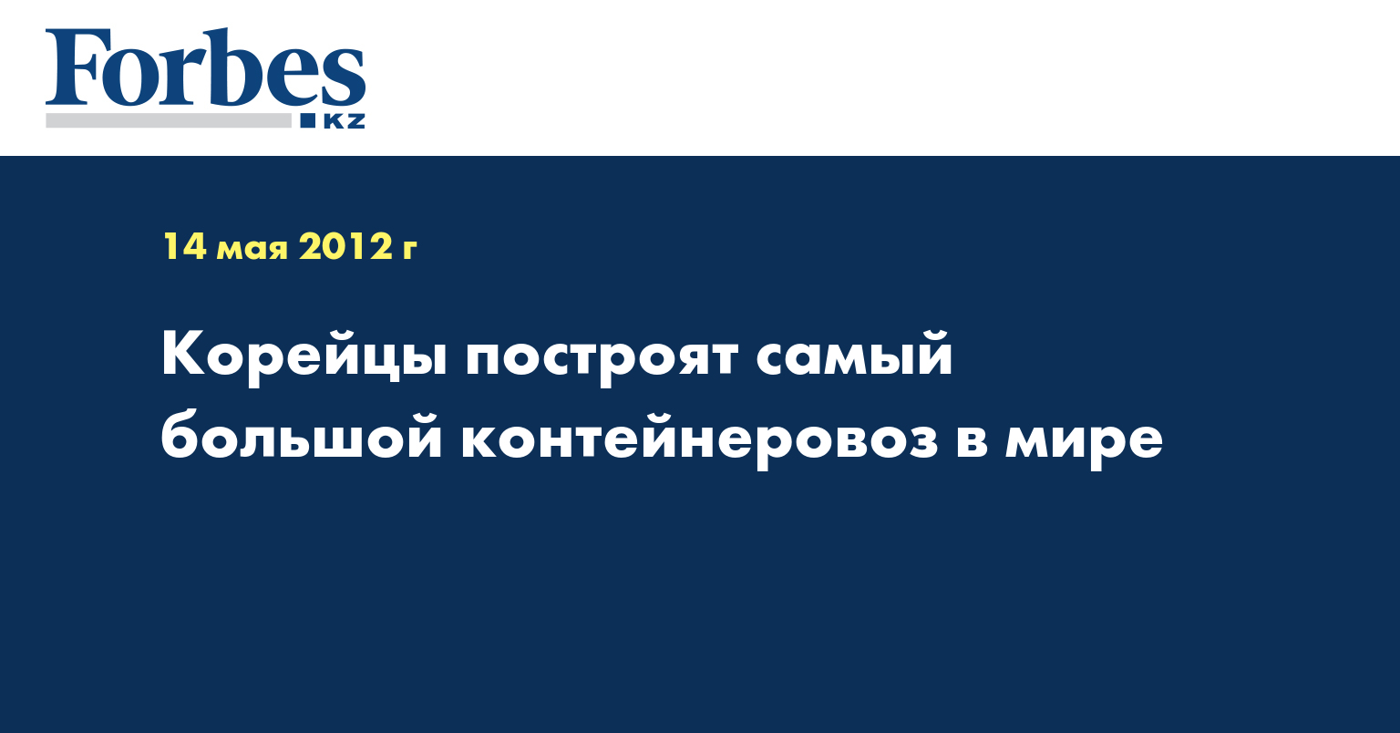 Южнокорейская судостроительная компания Daewoo Shipbuilding and Marine Engineering объявила о начале строительства самого большого контейнеровоза в мире. Об этом сообщает Lenta.ru со ссылкой на Chosun Ilbo. Длина судна составит 400 метров, а на его палубе смогут разместиться четыре футбольных поля. Судно сможет взять на борт 18 тысяч стандартных двадцатифутовых контейнеров.