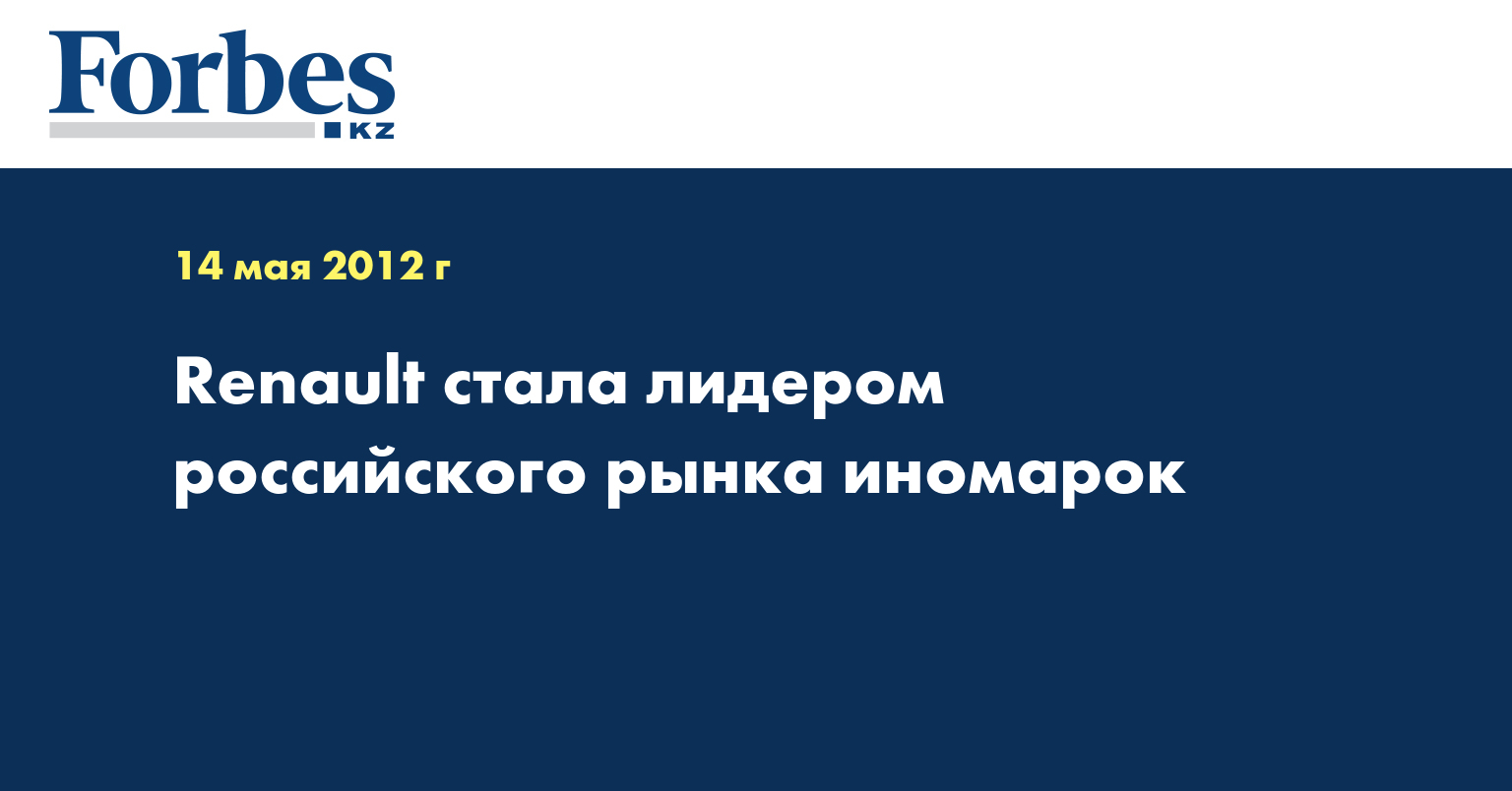 В России по итогам апреля 2012 года было продано 266 тысяч легковых и легких коммерческих автомобилей, что на 14 процентов превышает показатели 2011 года. Согласно исследованиям аналитиков Ассоциации Европейского Бизнеса (АЕБ), лидером российского автомобильного рынка остается "АвтоВАЗ", второе место занимает Renault, возглавившая рейтинг продаж иномарок, сообщает Lenta.ru.