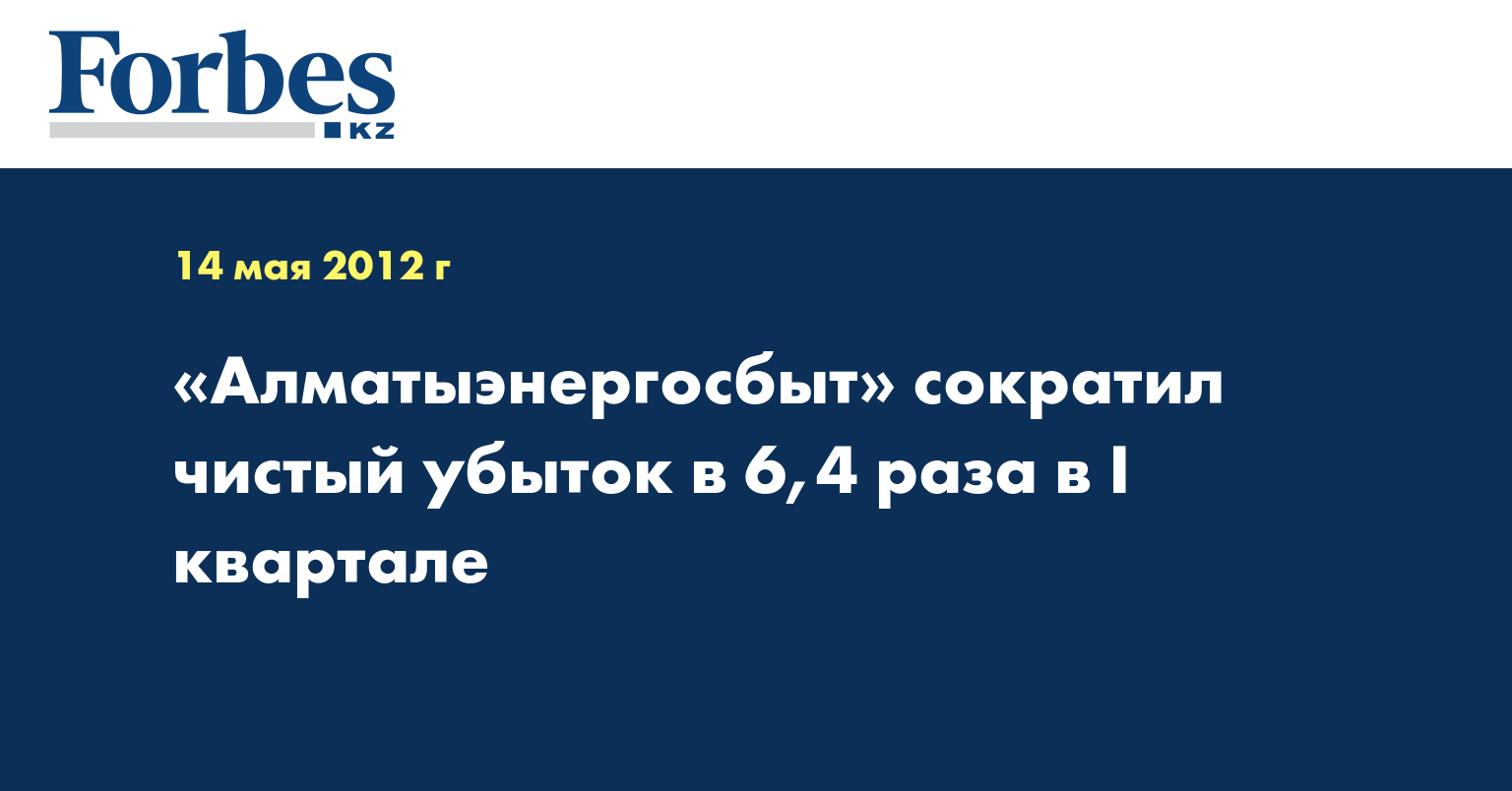 Чистый убыток ТОО «Алматыэнергосбыт» в I квартале составил Т83,516 млн, что в 6,4 раза меньше, чем в соответствующем периоде 2011 года, указывается в финансовой отчетности компании, передает КазТАГ.