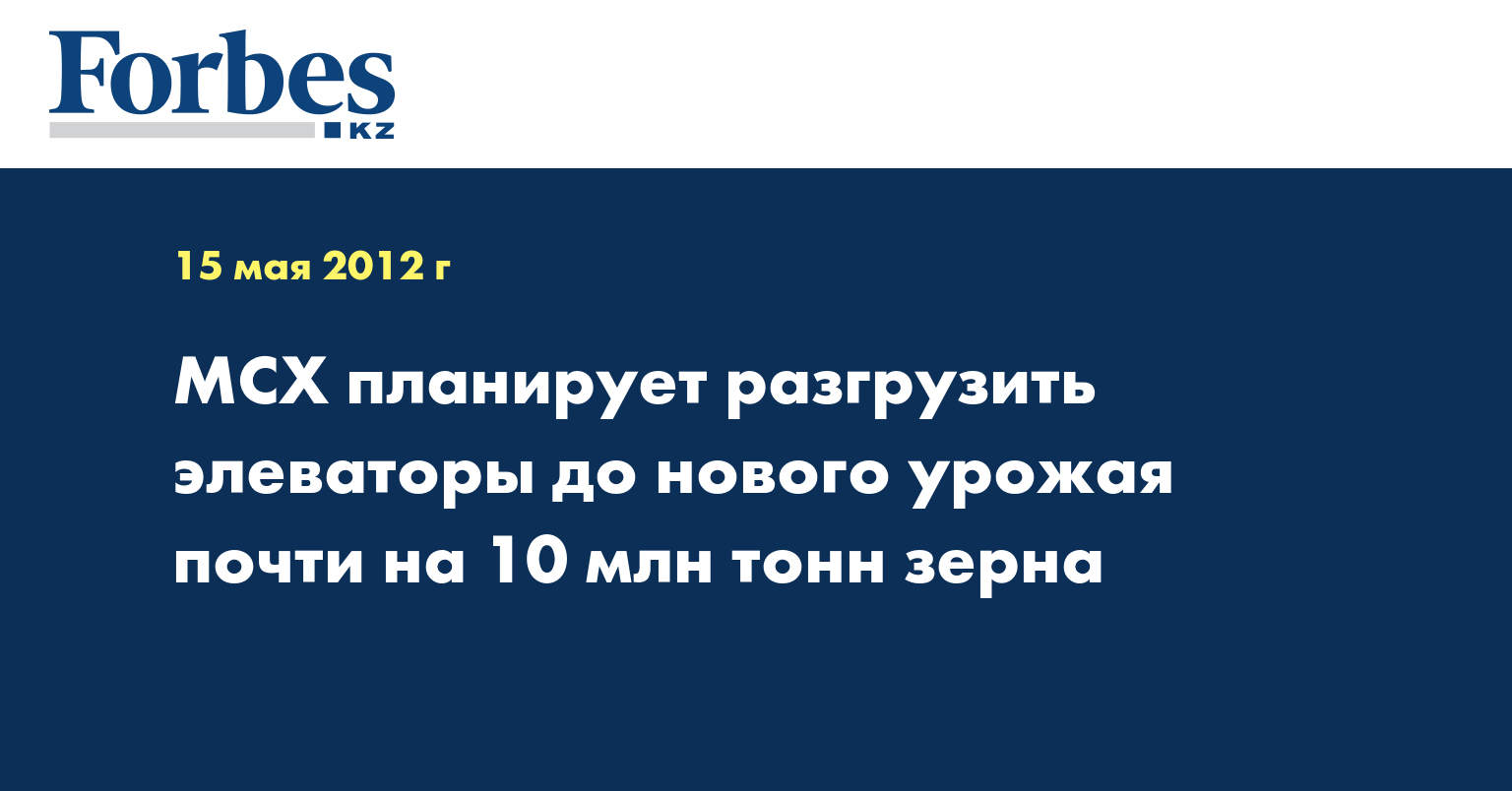 Министерство сельского хозяйства (МСХ) РК планирует разгрузить элеваторы до нового урожая почти на 10 млн тонн зерна, сообщил глава МСХ Асылжан Мамытбеков.