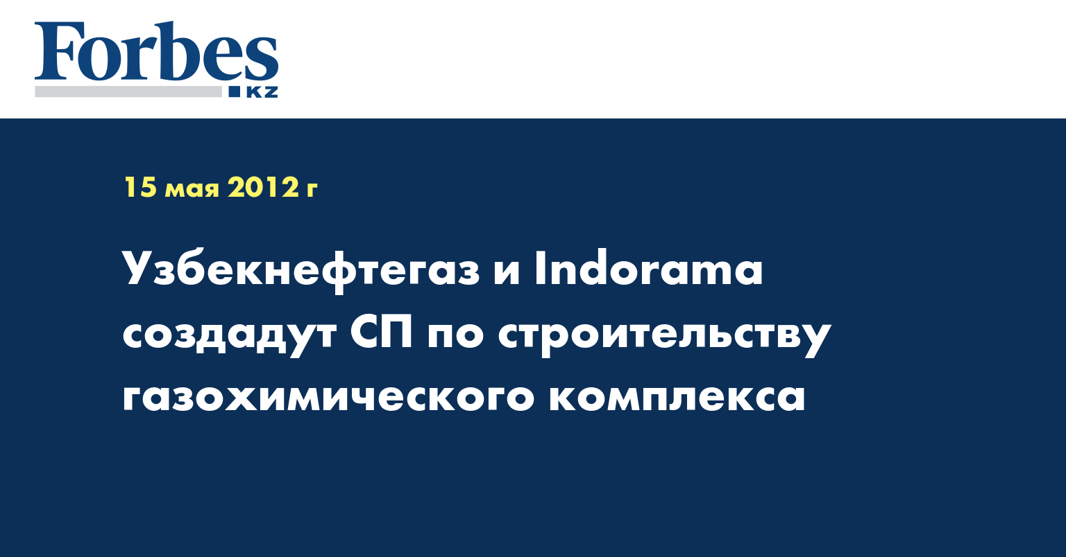 Национальная холдинговая компания (НХК) «Узбекнефтегаз» и сингапурская Indorama Group планируют во второй половине 2012 года создать СП по строительству газохимического комплекса (ГХК) в Кашкадарьинской области на юге Узбекистана, сообщил председатель правления узбекской компании Шокир Файзуллаев.
