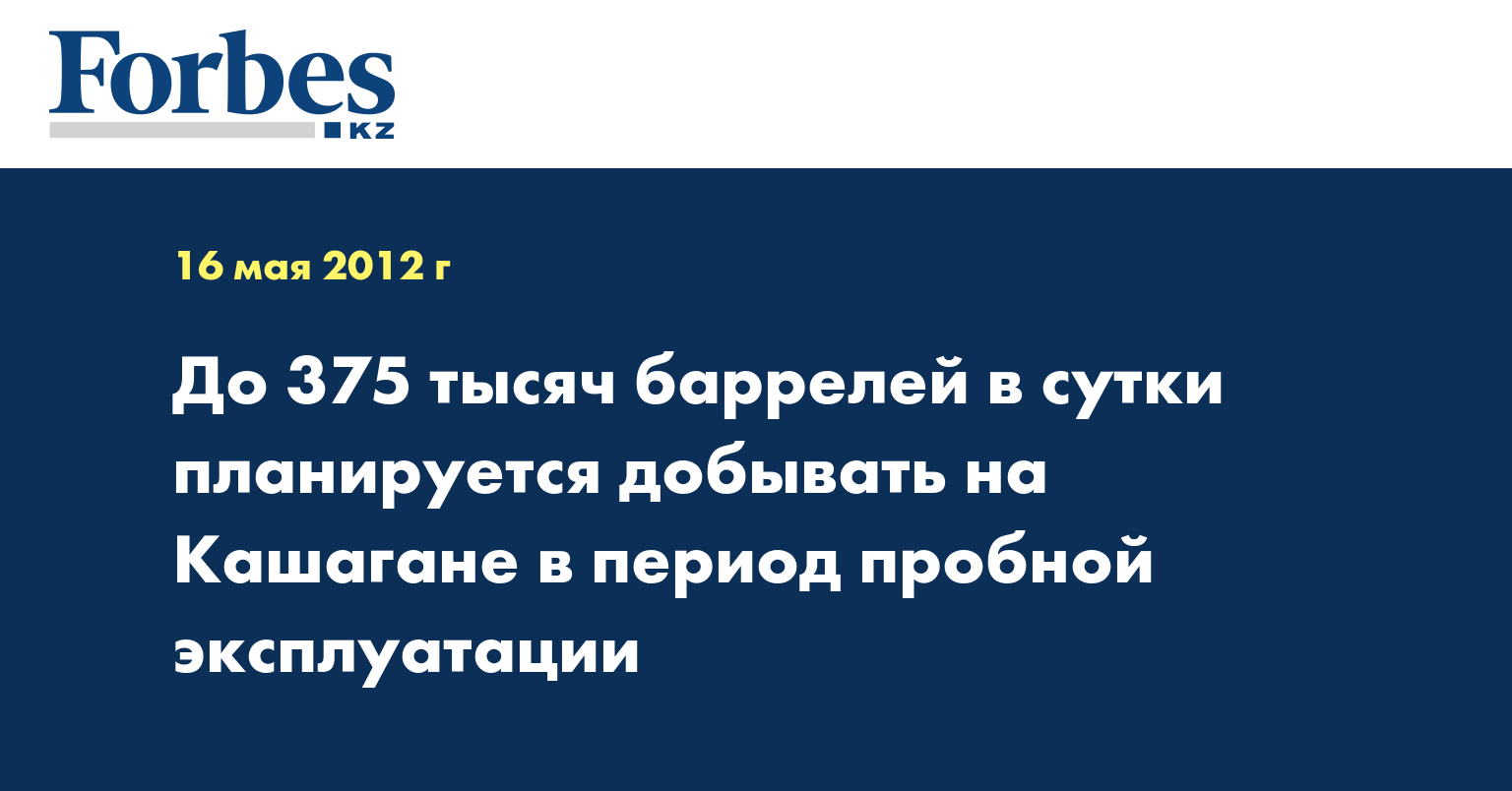 «Начало срока эксплуатации планируется в конце текущего года. Начнется она примерно с объема 75 тыс. баррелей в сутки с доведением до 375 тыс. Были варианты доведения и до 450 тыс. баррелей, но сегодня основной цифрой фигурирует 375 тыс. баррелей в сутки», - сказал Л. Киинов на пресс-конференции в среду, отвечая на вопросы журналистов, передает КазТАГ.