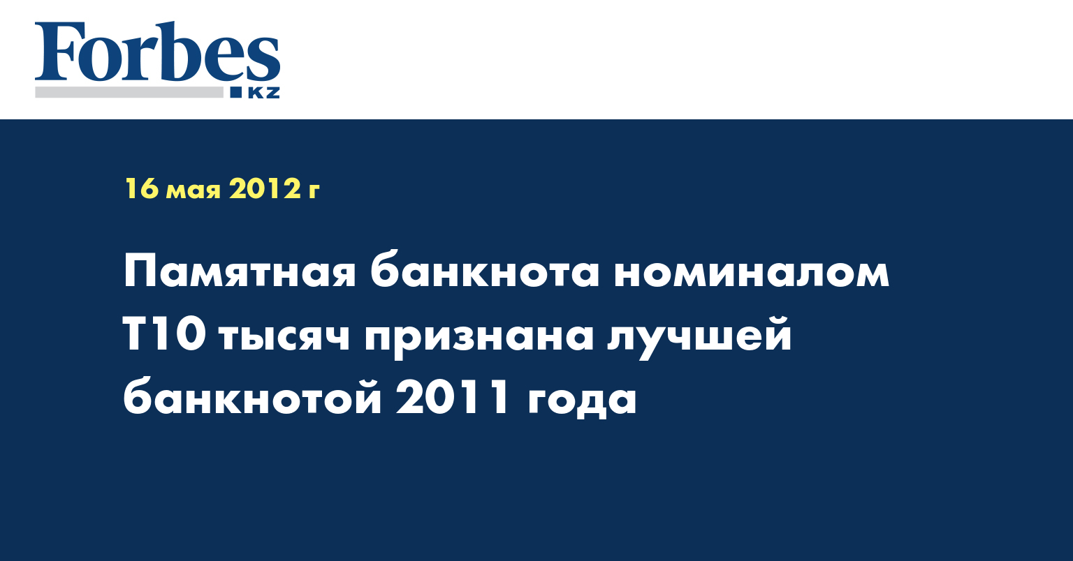 Казахстанская памятная банкнота номиналом Т10 тыс. признана лучшей банкнотой 2011 года, сообщила пресс-служба Национального банка РК.