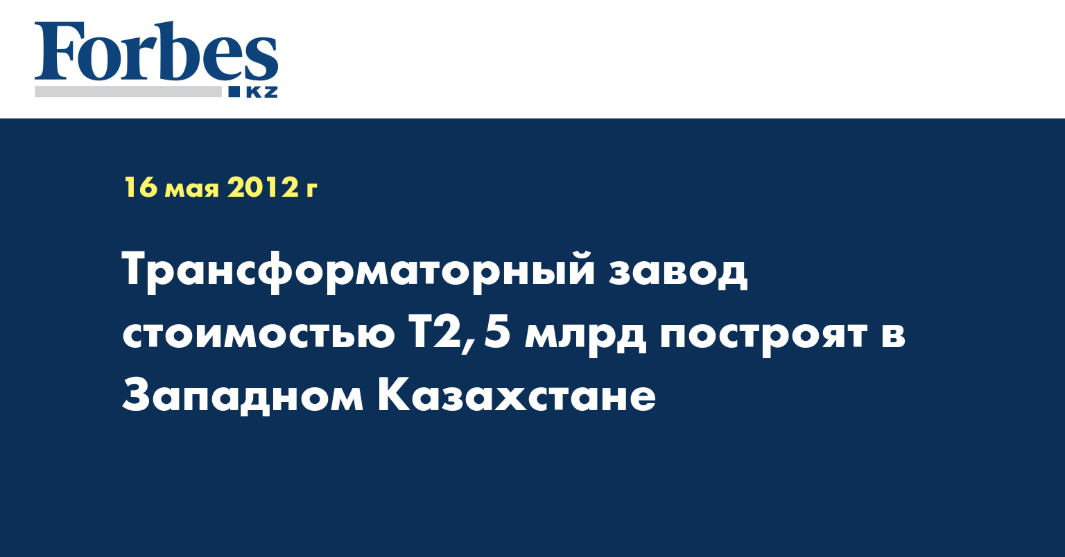 В сообщении также указывается, что стоимость проекта - Т2,5 млрд, предполагаемая мощность объекта - до 5 тыс. штук трансформаторов в год. Реализация проекта позволит создать 1 тыс. новых рабочих мест.