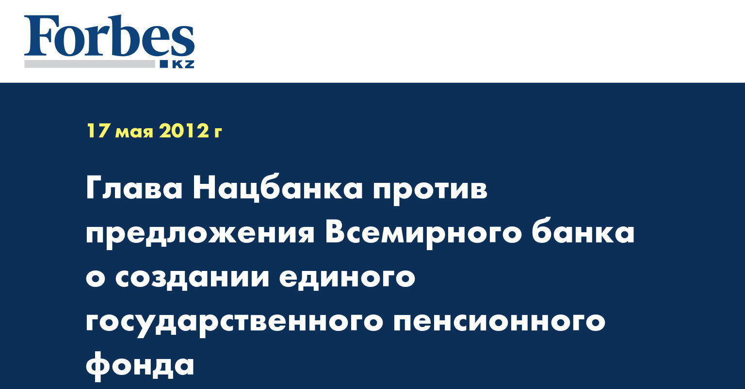 Председатель Национального банка РК Григорий Марченко против предложения Всемирного банка (ВБ) о создании в Казахстане единого государственного пенсионного фонда.